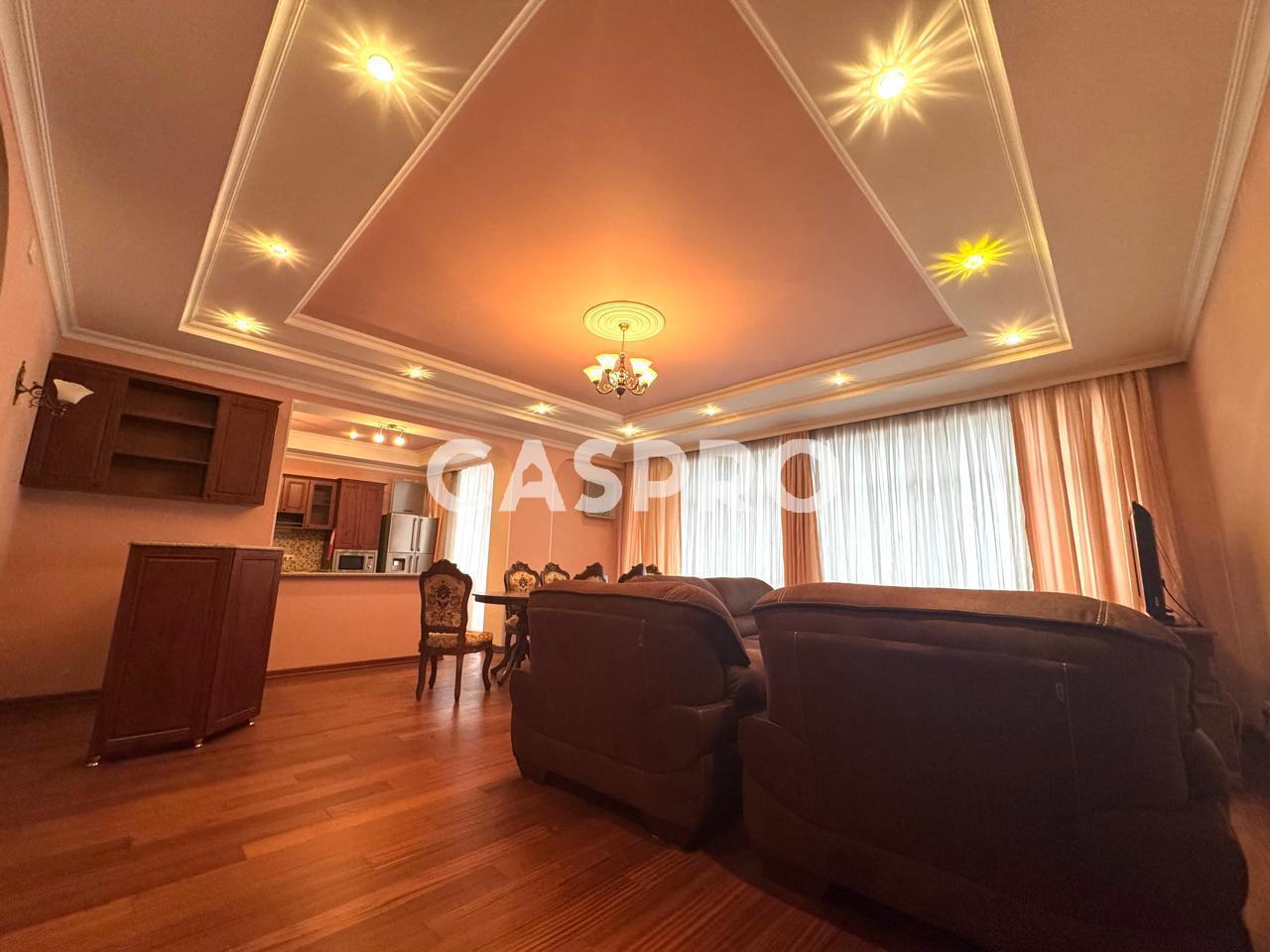 3 otaqlı dənizə və şəhərə mənzərəsi olan mənzil kirayə verilir. Bakının tam mərkəzində, 28 May metrosuna piyada 5 dəqiqəlik məsafədə yerləşir. Mənzil əla təmir olunub. İki vanna otağı ideal vəziyyətdədir. İki yataq otağı və mətbəxi var. Mətbəx yüksək keyfiyyətli məişət texnikası və kombi sistemi ilə təchiz olunub. Bina 2005-ci ildə tikilib. Binanın girişi yaxşı təmir olunub və mühafizə olunan qapalı parkinqi var. Əvvəllər heç vaxt icarəyə verilməyib. Hər şey təzədir, yaxşı vəziyyətdədir və çox təmizdir. Rahat qalmaq üçün hər şey var.