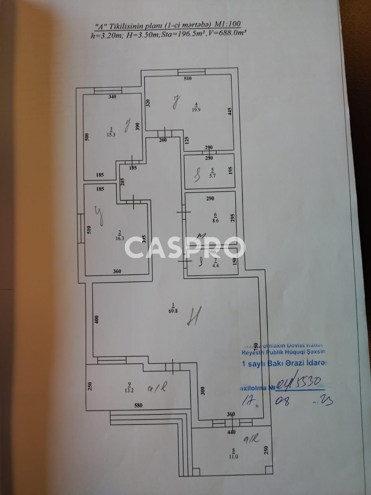 Продаётся дом с садом и верандой площадью 196,5 кв.м., построенный на участке 12 соток (ширина земли 15м, длина 80м) в посёлке Албалылыг Сабунчинского района. Дом расположен в 150 метрах от главной дороги, к дому проложена асфальтированная дорога. В квартире 3 спальни, кухня + прихожая, 1 санузел. За домом построен одноэтажный склад из 4 комнат. Двор очень просторный. На нём можно построить бассейн, детскую площадку и еще останется место для паркинга автомобилей. Дом не ремонтировался, но вы можете сделать ремонт по своему вкусу.