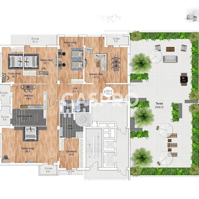Nəsimi rayonunda Ceyhun Hacıbəyli küçəsində 12 Mərtəbəli Yeni tikilinin 11-ci mərtəbəsində ümumi sahəsi 342 kv mənzil + 242 kv olan Terraslı 6 otaqlı Mənzil satılır ! Mənzilin ümumilikdə 4 balkonu 3 sanuzeli və geni terrası var Mənzildə bütün pəncərələr vitrajlıdır. Binada yaşayış var qazlaşma olub. 2 mərtəbəli yeraltı qarajı var 24 saat qorunan yeni tikilidir. Bu yeni tikilidə cəmi 2 ədəd terraslı mənzil var Mənzilin 1 kv 2800 Azn-dir Terrasla birlikdə. Otaqlar ayrı-ayrıdır. Sənəd müqavilədir. yxaınlarda çıxarış veriləcək.